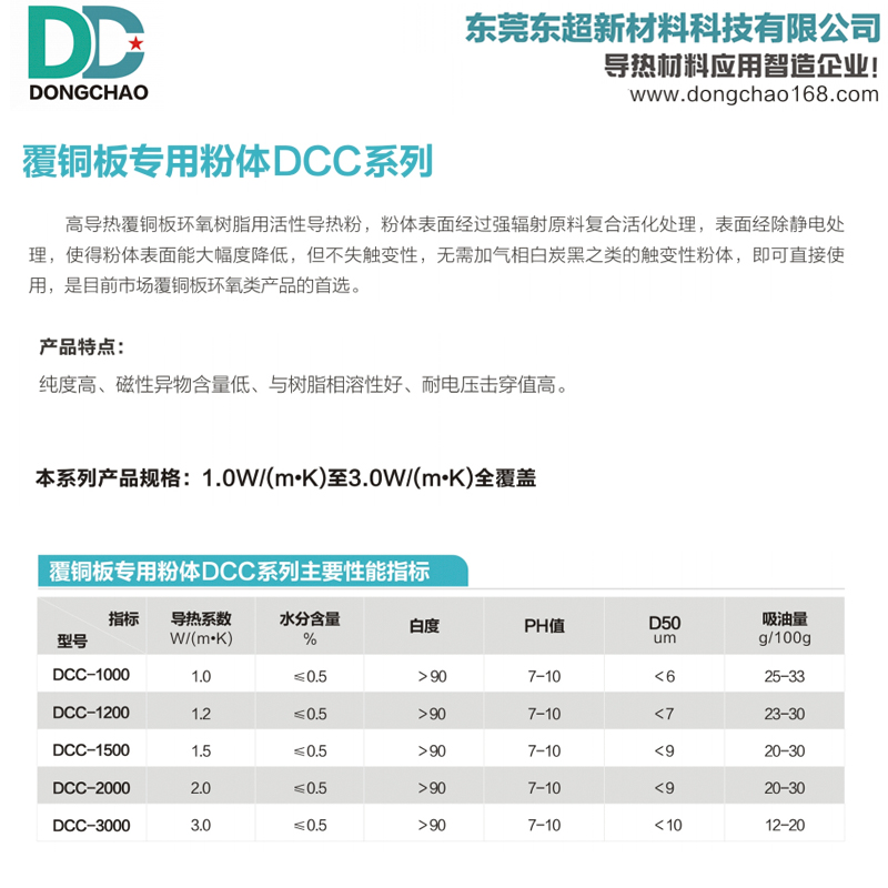 为结构创新提供基础:均匀且性能可控的粉体,也为后续通过磁场取向等技术构建垂直定向导热结构(趋势二)提供了优良的原材料基础,使得热量能够更高效地垂直贯穿绝缘层。结语 在电子设备不断向高功率、高集成度、小型化迈进的时代,散热材料的创新是支撑产业升级的隐形基石。东超新材料凭借其在功能性粉体领域的深厚积累,推出的2.5W覆铜板导热复合粉体,直击行业痛点,通过“复合化”与“精细化表面处理”两大核心技术,为下游客户提供了兼具优异导热性能、良好工艺适应性与综合成本优势的解决方案。 它不仅是一款产品,更是东超新材料对高导热金属基覆铜板填料升级趋势的深刻理解和成功落地。选择东超,即是选择以材料创新驱动散热效能跃升,共同拥抱电子散热更高效、更可靠的未来。