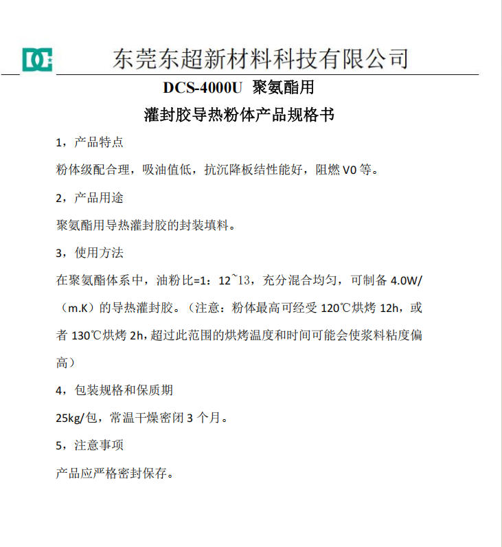 聚氨酯灌封胶和环氧灌封胶广泛应用于新能源汽车电容、户外电源等领域。对于灌封胶而言,导热系数与流动性的矛盾始终存在——粉体加得多,导热好但流不动;粉体加得少,流动性好但不导热。东超DCS-4000U:4W/m·K下的“水流”体验 实现导热系数4.0W/m·K,通常需要填充超过80%甚至90%的粉体。此时,胶体的粘度往往高达数万cPs,甚至呈“面团状”,无法灌入窄缝。 东超新材的灌封胶导热粉(DCS-4000U)通过“球化率提升+精密级配”双重工艺,在油粉比高达1:12~13的条件下,依然保持了优异的流淌性。其核心在于: