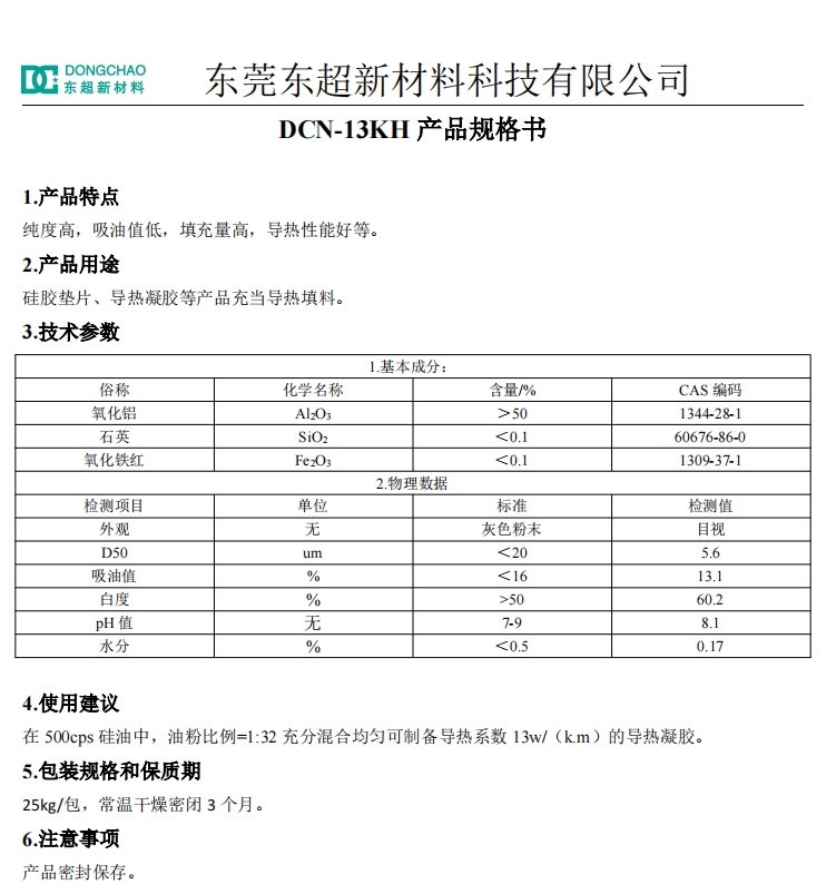 更为关键的是,人形机器人的每一克重量都关乎动态性能。过重的“手臂”会导致末端惯量过大,增加电机负荷,降低响应速度。东超新材通过使用低比重的复配粉体技术,在保证导热系数的前提下,显著降低了导热材料的整体密度。这意味着,机器人工程师可以在不增加自重的前提下,为关节填充更厚的导热层,或者将节省下来的重量分配给电池或结构加强。这种“热”与“轻”的精妙平衡,是提升机器人动态响应能力和续航能力的关键。感知系统的信噪比守护——温度与纯净的双重考验 如果说关节是机器人的肌肉,那么遍布全身的传感器就是神经末梢。无论是用于力控的六维力传感器,还是用于环境感知的触觉皮肤,都对温度极其敏感。压电陶瓷材料在温度变化时,其压电系数会发生漂移,导致力觉反馈失真;电容式触觉传感器的介电层,其介电常数随温度波动,会使触控信号产生温漂。 因此,在传感器周围填充的导热材料,不仅要负责将芯片产生的热量带走,更要确保自身不对敏感信号产生干扰。导热粉体在这里扮演着双重角色:既要导热,又要“安静”。如果粉体中存在微量的磁性杂质(如铁、钴、镍或其氧化物),在变化的电磁场环境下,这些杂质会产生微弱的感应电流或磁噪声,耦合进传感器信号链路,淹没微弱的触觉或力觉信号,导致信噪比恶化。 东超新材深知“纯净”对于精密传感的价值。我们通过严格的原料筛选、全程工艺以及高纯度的生产过程控制,对导热粉体进行深度纯化处理。确保每一批出厂的粉体,其磁性物质含量被控制在极低水平,从源头上杜绝了磁性杂质对传感器信号的干扰。当东超的导热材料填充在机器人灵巧手的指尖传感器或手腕力控传感器周围时,它们默默地构建起一条纯净的热流通道,既带走了热量的干扰,又守护着每一个微弱信号的高保真传输。 在人形机器人即将叩开亿万家庭大门的前夜,东超新材正以创新的导热粉体技术,助力机器人突破散热与轻量化的双重瓶颈,让冰冷的机械拥有更持久的活力与更敏锐的感知。