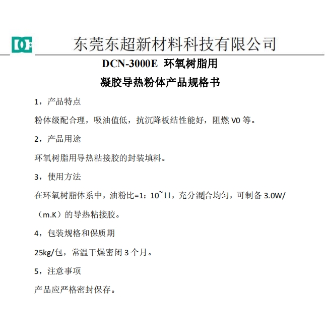 新能源汽车的飞速发展,对动力电池的能量密度、安全性与使用寿命提出了极致要求。作为动力电池包的核心结构材料,导热环氧结构胶不仅要实现电芯、模组与箱体之间的高强度粘接固定,更要承担关键的热量传导与缓冲防护功能。东超新材聚焦动力电池热管理与结构安全双重需求,推出DCN-3000E专用导热粉体,为高性能环氧结构胶注入强劲动力,构筑动力电池安全可靠的“隐形骨架”。 动力电池包内部结构紧凑,电芯在充放电过程中持续产生热量,若热量分布不均、积聚无法导出,将导致电芯温差过大,加速性能衰减,甚至引发热失控风险。同时,汽车行驶中的振动、冲击,以及不同材料间的热胀冷缩应力,都对结构胶的力学性能、导热性能与耐疲劳性能提出严苛挑战。传统环氧结构胶常因导热填料选择不当,陷入“高强度则导热差、高导热则脆性大、易开裂”的性能困境。